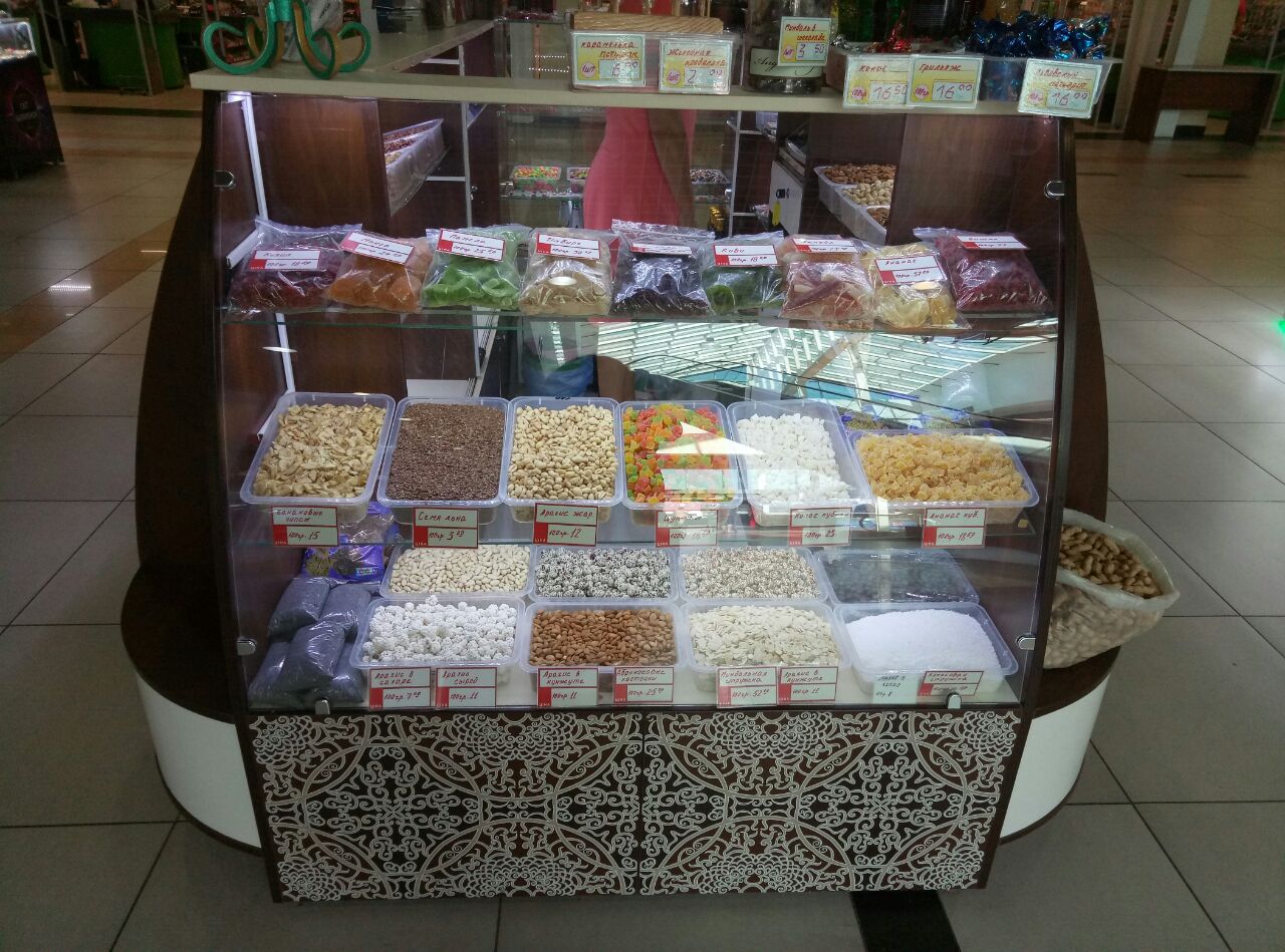 У магазині на вас чекають усміхнений персонал і вигідні ціни. Основний товар - солодощі, горіхи і насіння, сухофрукти.
